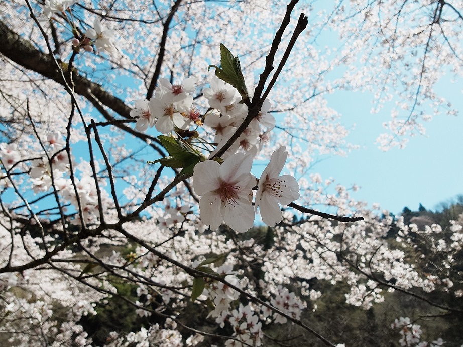 今日は雲一つない青空で、立ち止まり、眺めた桜。